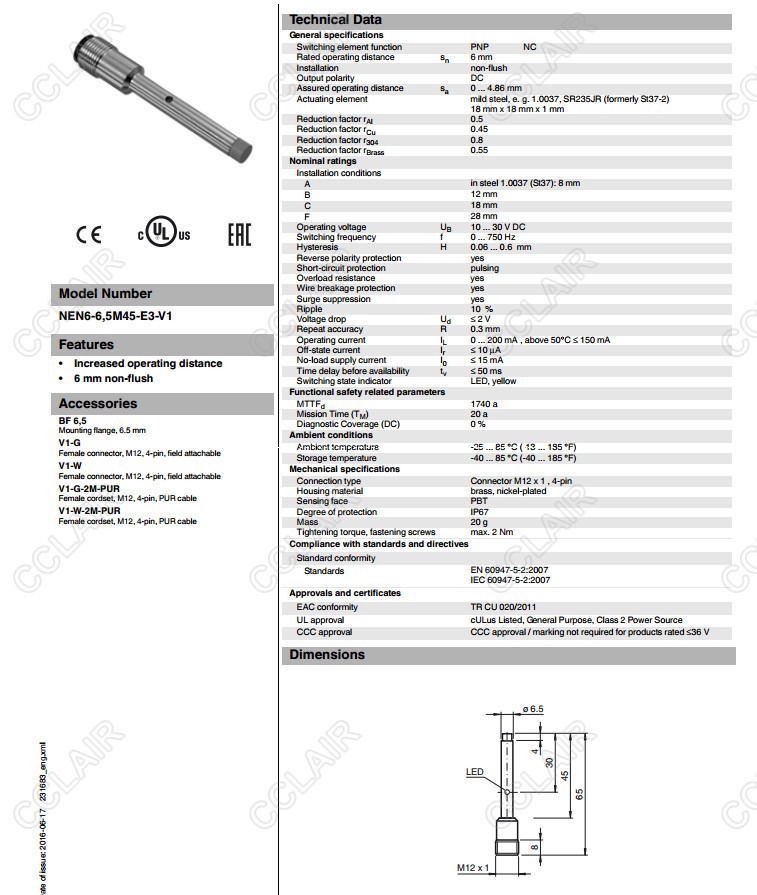 NEN6-6,5M45-E3-V1,电感式接近开关