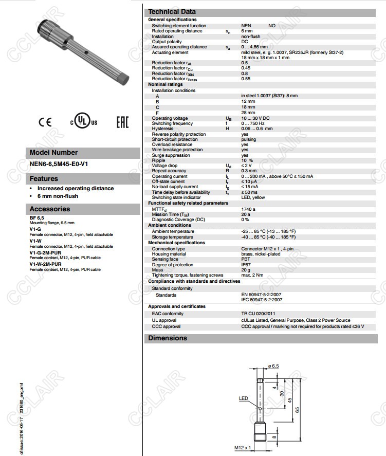 NEN6-6,5M45-E0-V1,电感式接近开关