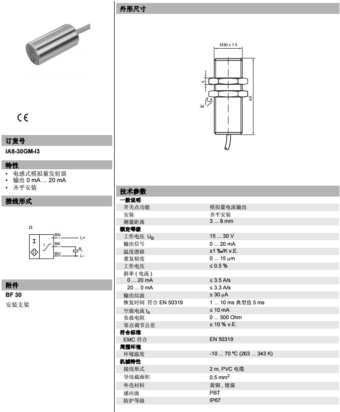 IA8-30GM-I3电感式接近开关