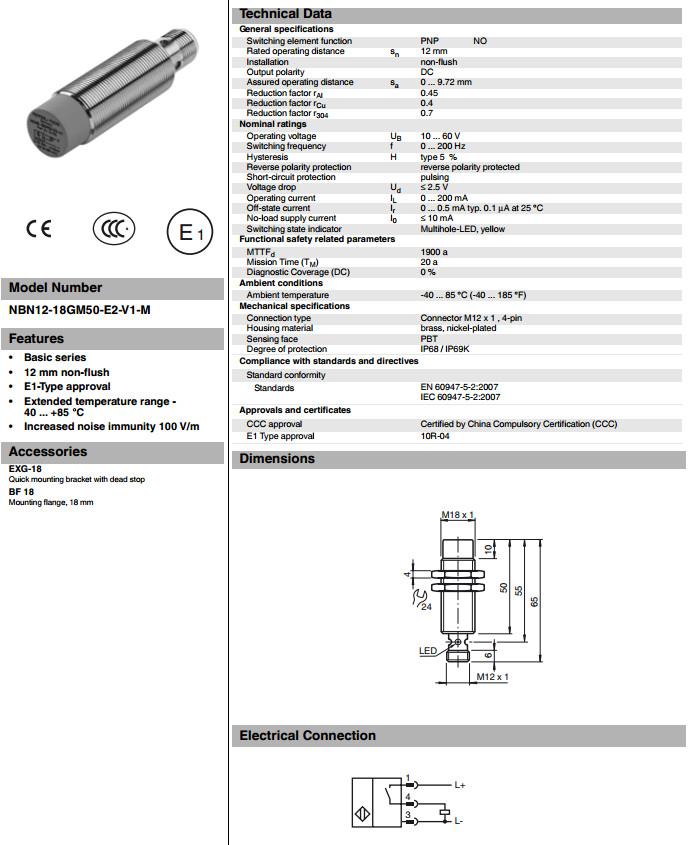 NBN12-18GM50-E2-V1-M电感式接近开关