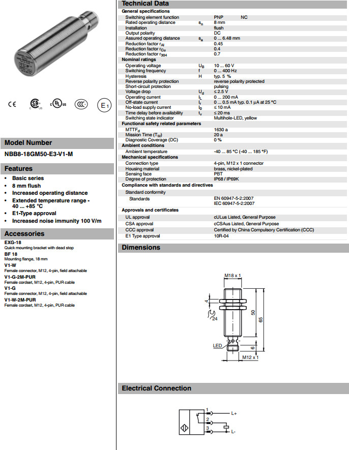 NBB8-18GM50-E3-V1-M电感式接近开关