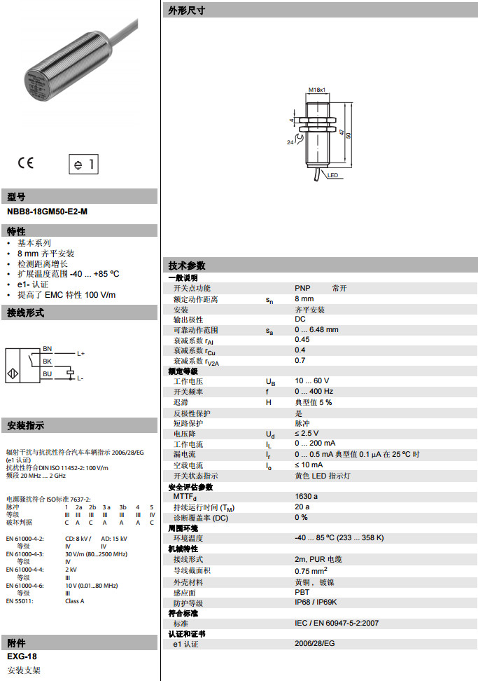 NBB8-18GM50-E2-M电感式接近开关