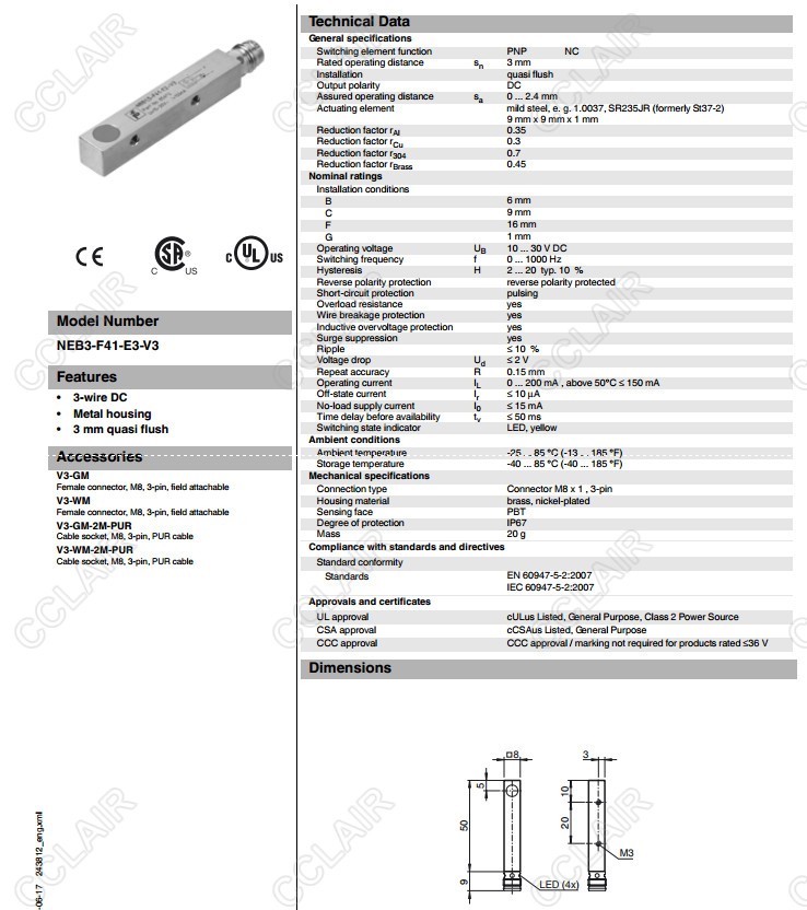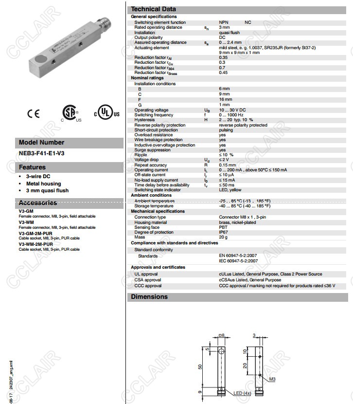 NEB3-F41-E1-V3,NEB3-F41-E3-V3,电感式接近开关