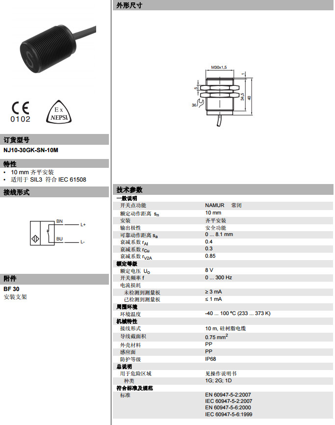NJ10-30GK-SN-10M电感式接近开关