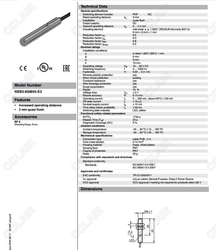 NEB3-8GM45-E3,电感式接近开关