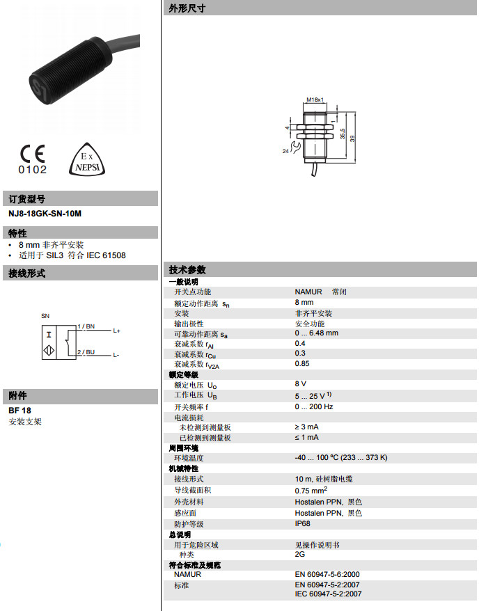 NJ8-18GK-SN-10M电感式接近开关