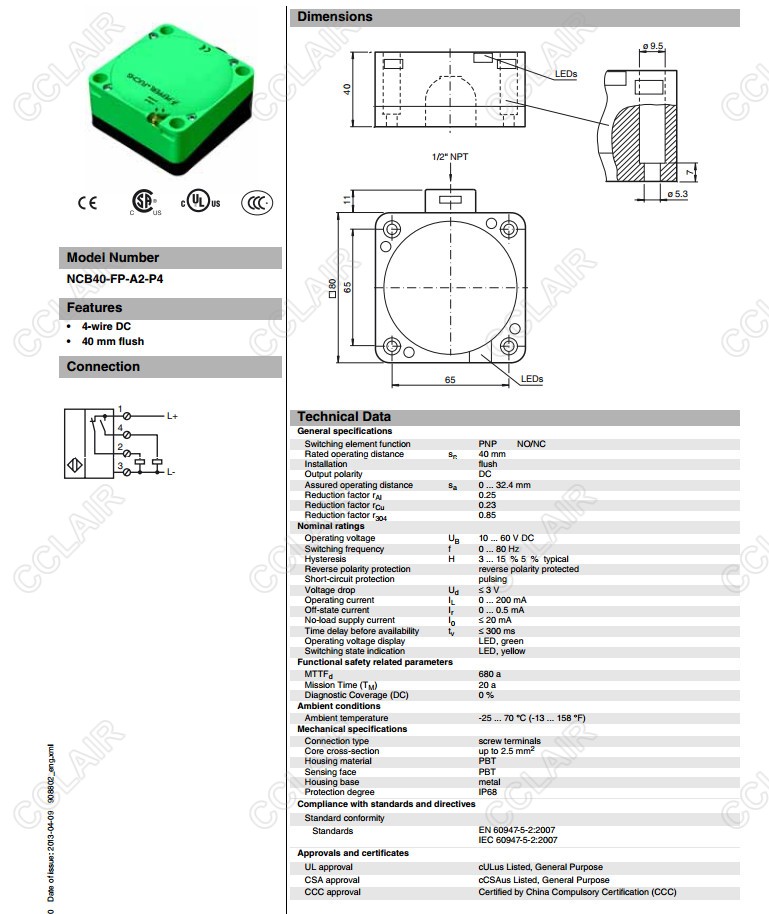 NCB40-FP-A2-P2,NCB40-FP-A2-P4,电感式接近开关