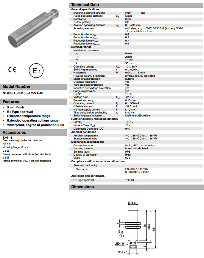 NBB5-18GM50-E2-V1-M电感式接近开关
