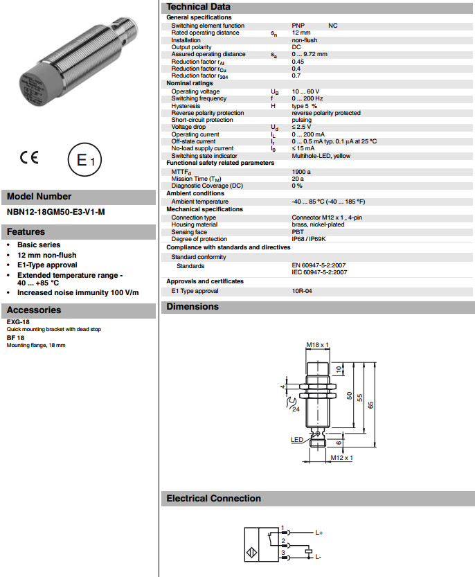 NBN12-18GM50-E3-V1-M电感式接近开关