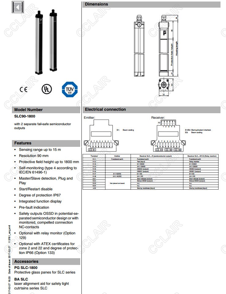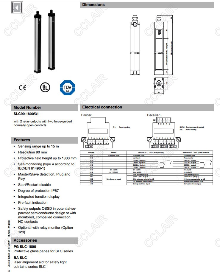 SLC90-1800,SLC90-1800-S,SLC90-1800/31,SLC90-600,SLC90-600-S,安全光栅