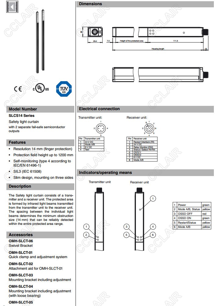 SLCS14Series,SLCS30Series,SLCS60Series,SLCS90Series,安全光栅