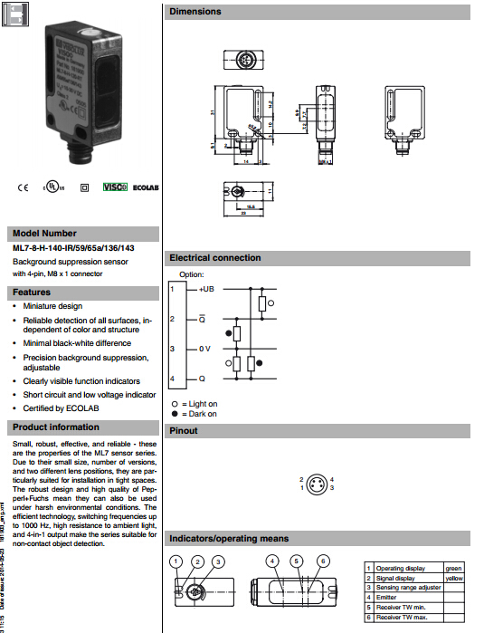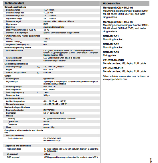 ML7-8-H-140-IR/59/65a/136/143,漫反射型传感器