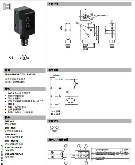ML6-8-H-40-RT/DS/25/95/136,漫反射型传感器