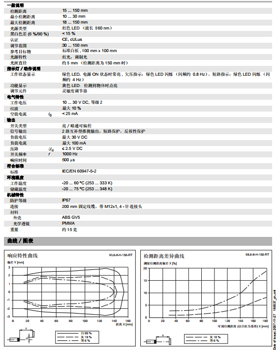 ML6-8-H-150-RT/59/65a/115b/136,漫反射型传感器