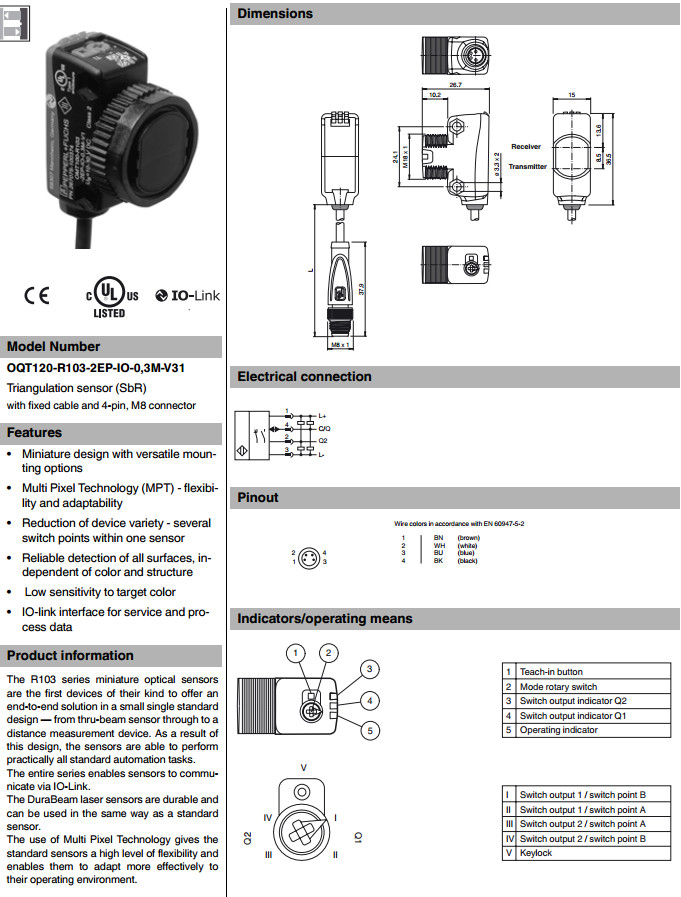 OQT120-R103-2EP-IO-0,3M-V31,开关传感器