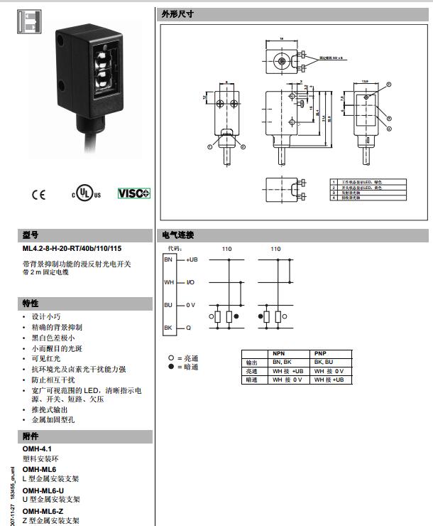 ML4.2-8-H-20-RT/40b/110/115,漫反射型传感器