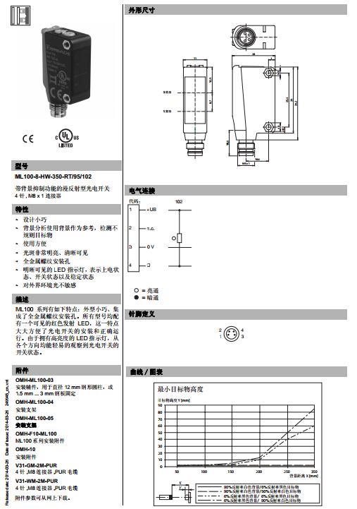 ML100-8-HW-350-RT/95/102,漫反射型传感器