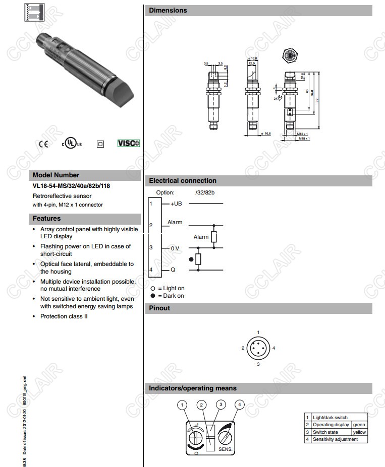 VL18-54-MS/32/40a/82b/118,反射板型传感器