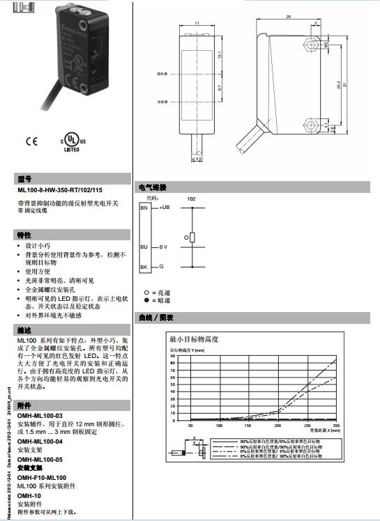 ML100-8-HW-350-RT/102/115,漫反射型传感器