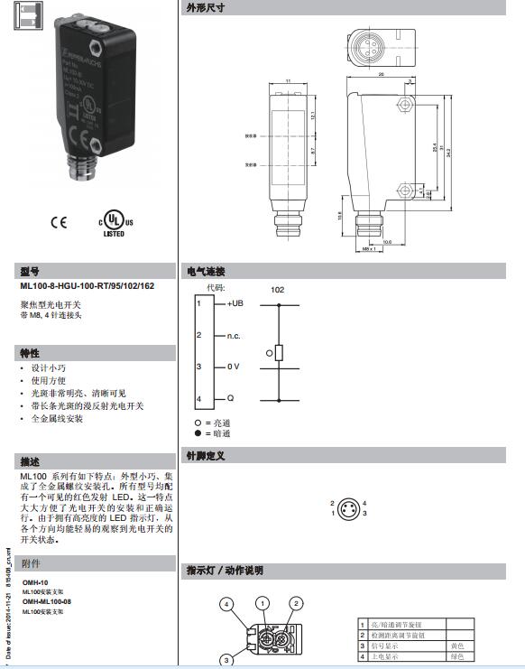 ML100-8-HGU-100-RT/95/102/162,漫反射型传感器
