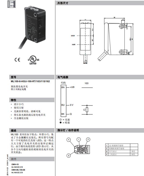 ML100-8-HGU-100-RT/103/115/162,漫反射型传感器