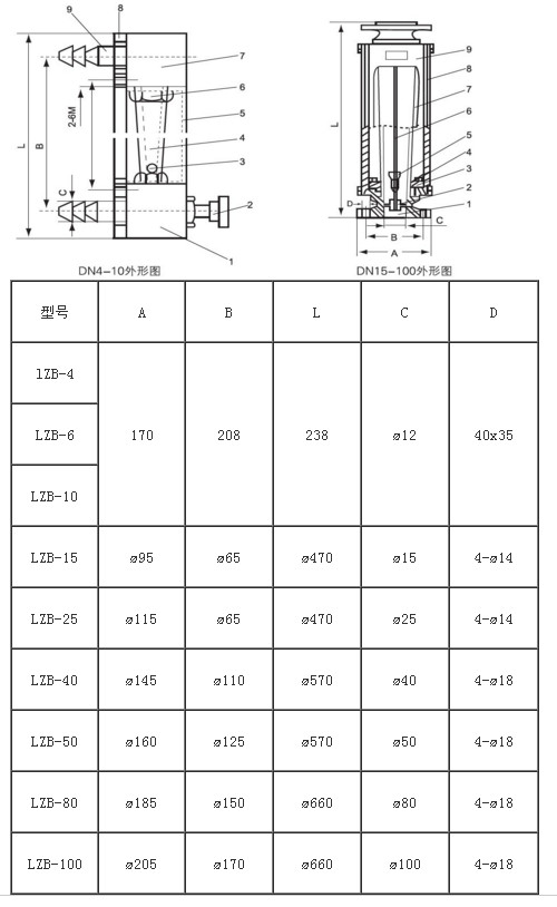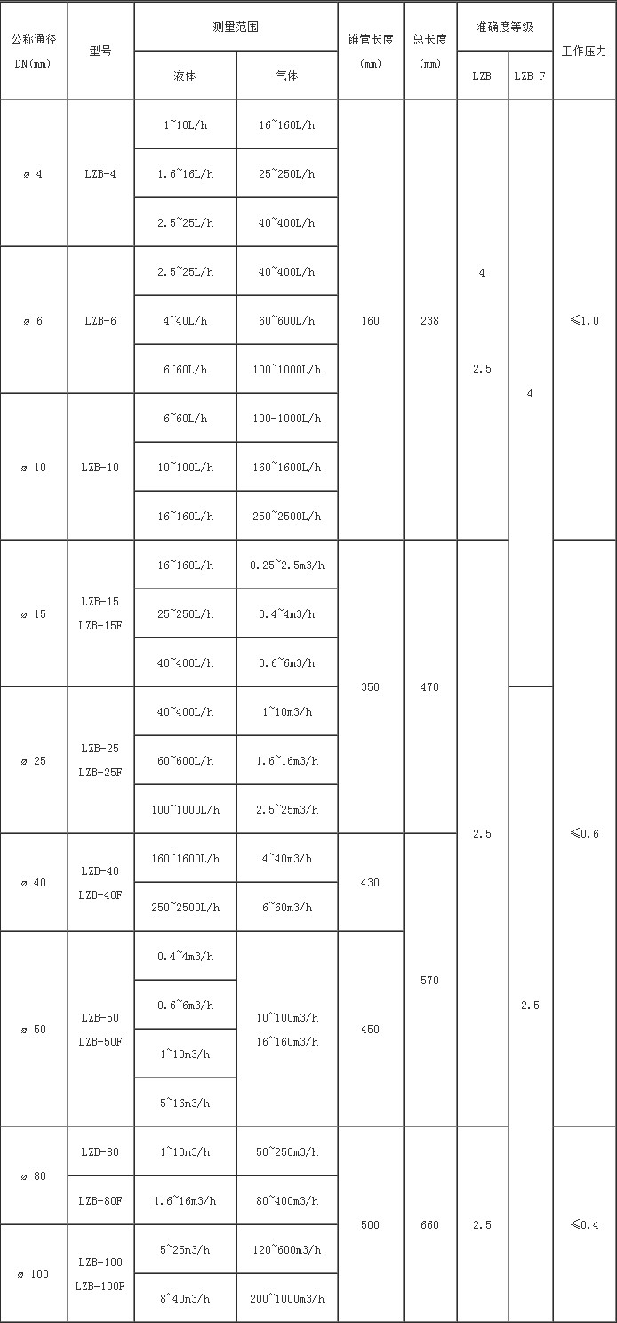 LZB-4,LZB-6,LZB-10,LZB-15,LZB-25,LZB-40,LZB-50,LZB-80,LZB-100,玻璃转子流量计