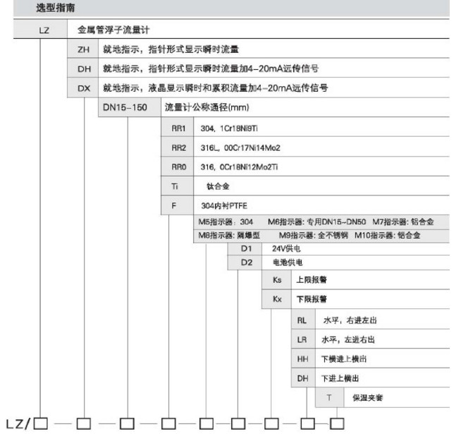 LZ-DX-15,LZ-DX-25,LZ-DX-40,LZ-DX-50,LZ-DX-80,LZ-DX-100,LZ-DX-150,金属管浮子流量计M10指示器