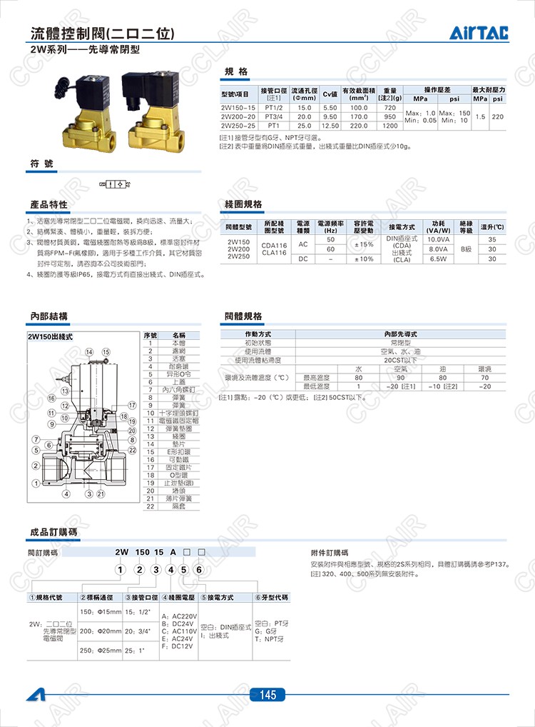 2W150-15,2W200-20,2W250-25,AIRTAC流体控制阀