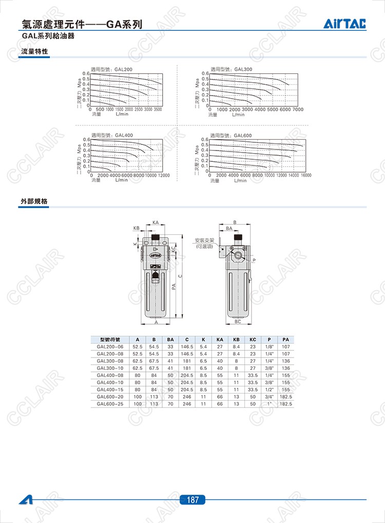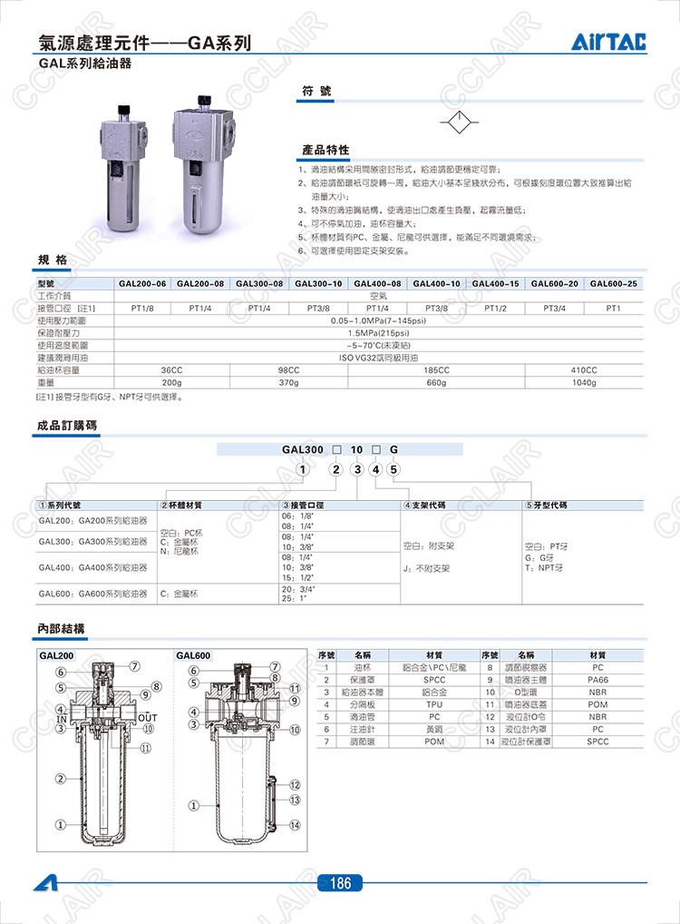 GAL200-06,GAL200-08,GAL300-08,GAL300-10,GAL400-08,GAL400-10,AIRTAC给油器