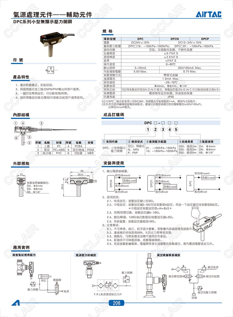 DPC-01,DPC-10,DPCN-01,DPCN-10,DPCP-01,DPCP-10,AIRTAC无显示压力开关