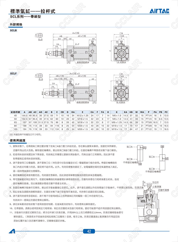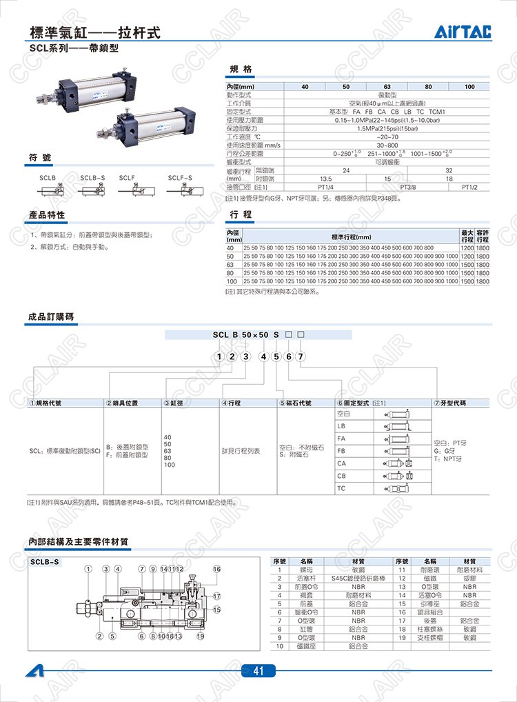 SCLB40*25,SCLB40*25-S,SCLB40*50,SCLF40*25,SCLF40*25-S,SCLF40*50,AIRTAC亚德客标准气缸-拉杆式