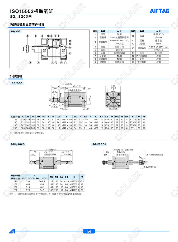 SG125*25,SG125*25-S,SGD125*25,SGD125*25-S,SGJ125*25,SGJ125*25-S,AIRTAC亚德客标准气缸