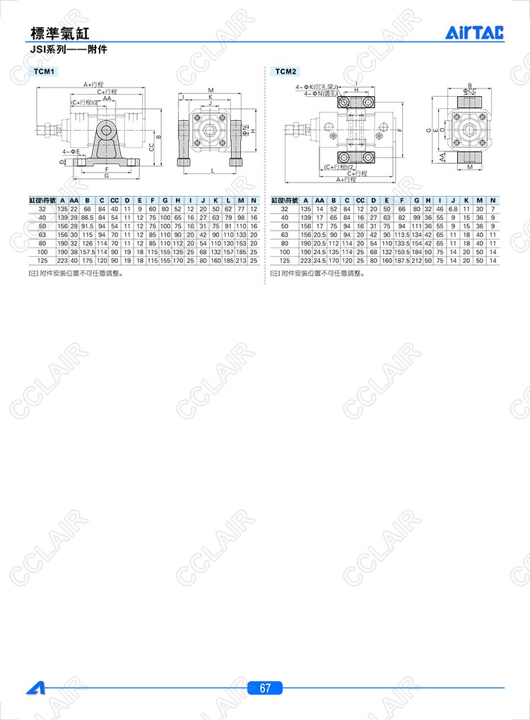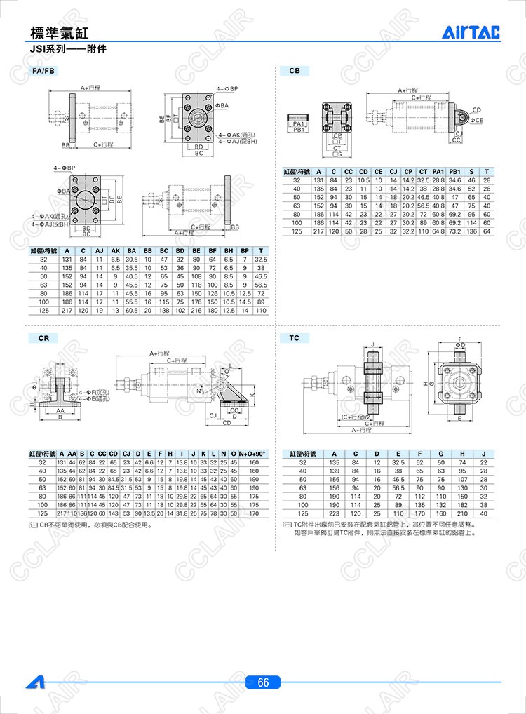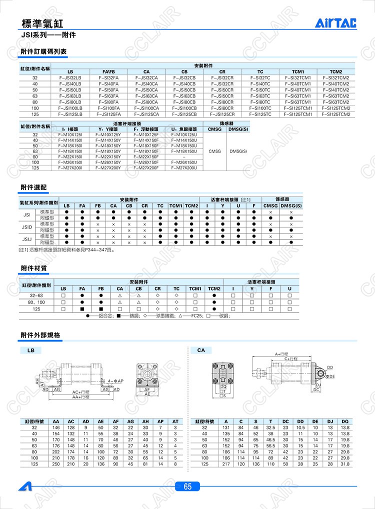 LB32,CA32,FA/FB32,CB32,CR32,TC32,FTC32,TCM132,TCM232,AIRTAC亚德客标准气缸附件