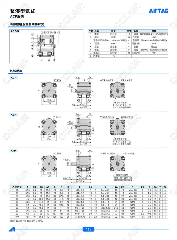 ACP12*5,ACP12*5-S,ASP12*5,ASP12*5-S,ATP12*5,ACPD12*5,ACPJ12*5,AIRTAC亚德客紧凑型气缸
