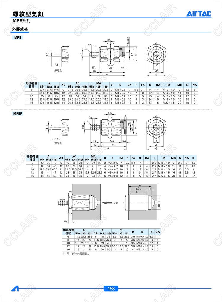 MPE6*5,MPE6*5-S,MPE6*10,MPE6*10-S,MPEF6*5,MPEF6*5-S,MPEF6*10,MPEF6*10-S,AIRTAC亚德客螺纹型气缸