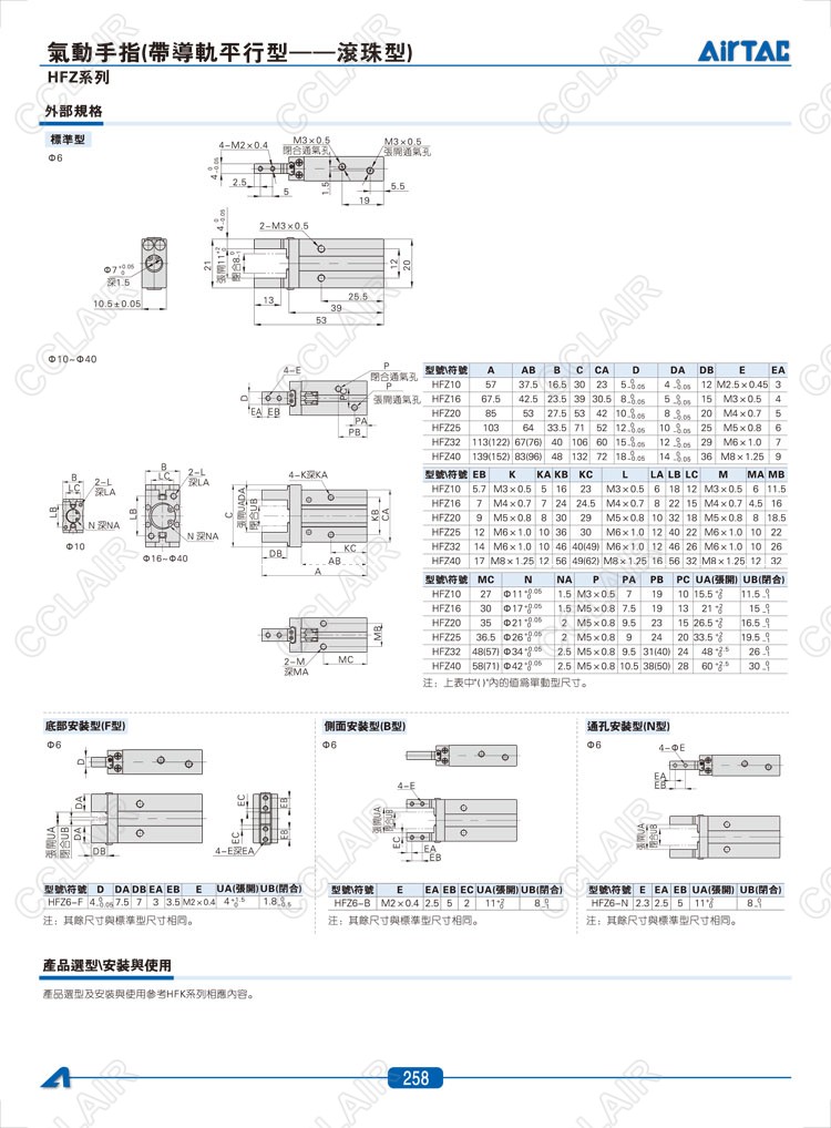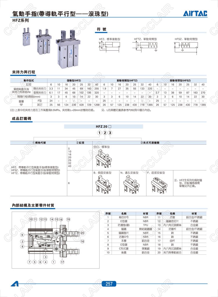 亚德客AIRTAC,HFZ6,HFZ6-B,HFSZ10,HFSZ16,HFTZ25,HFTZ32,气动手指