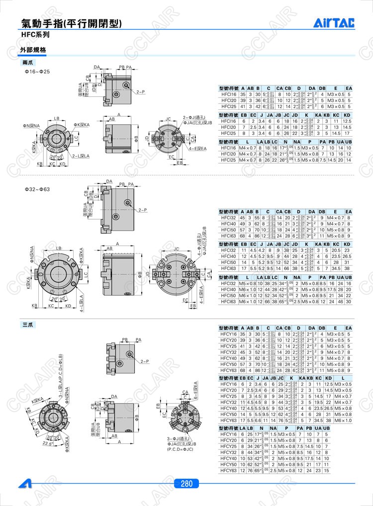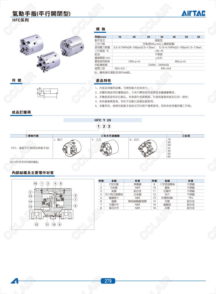 亚德客AIRTAC,HFCI16,HFCI20,HFCY25,HFCY32,HFCX40,HFCX50,气动手指