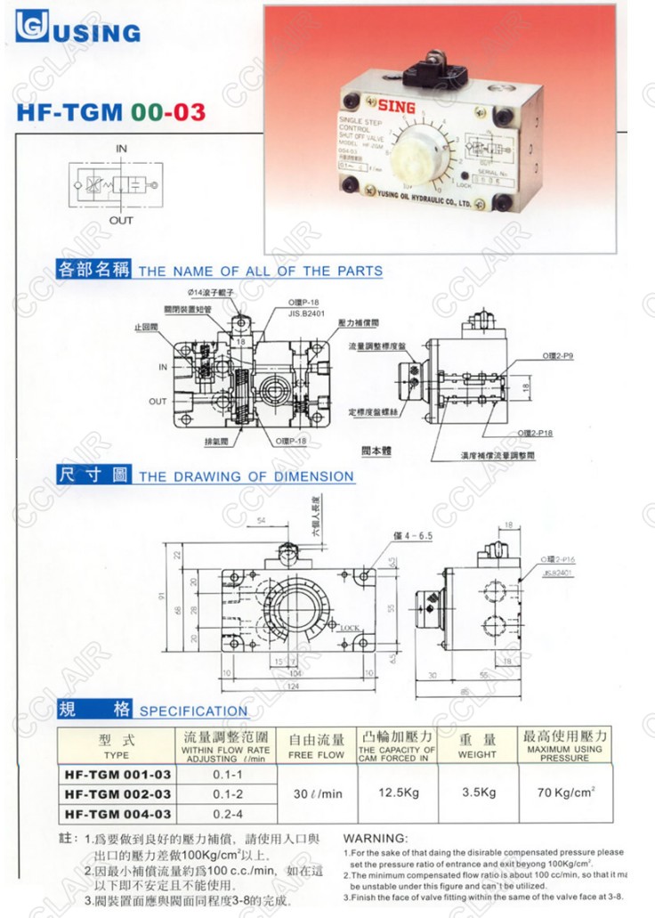USING峰欣流量控制阀 HF-TGM001-03,HF-TGM002-03,HF-TGM004-03