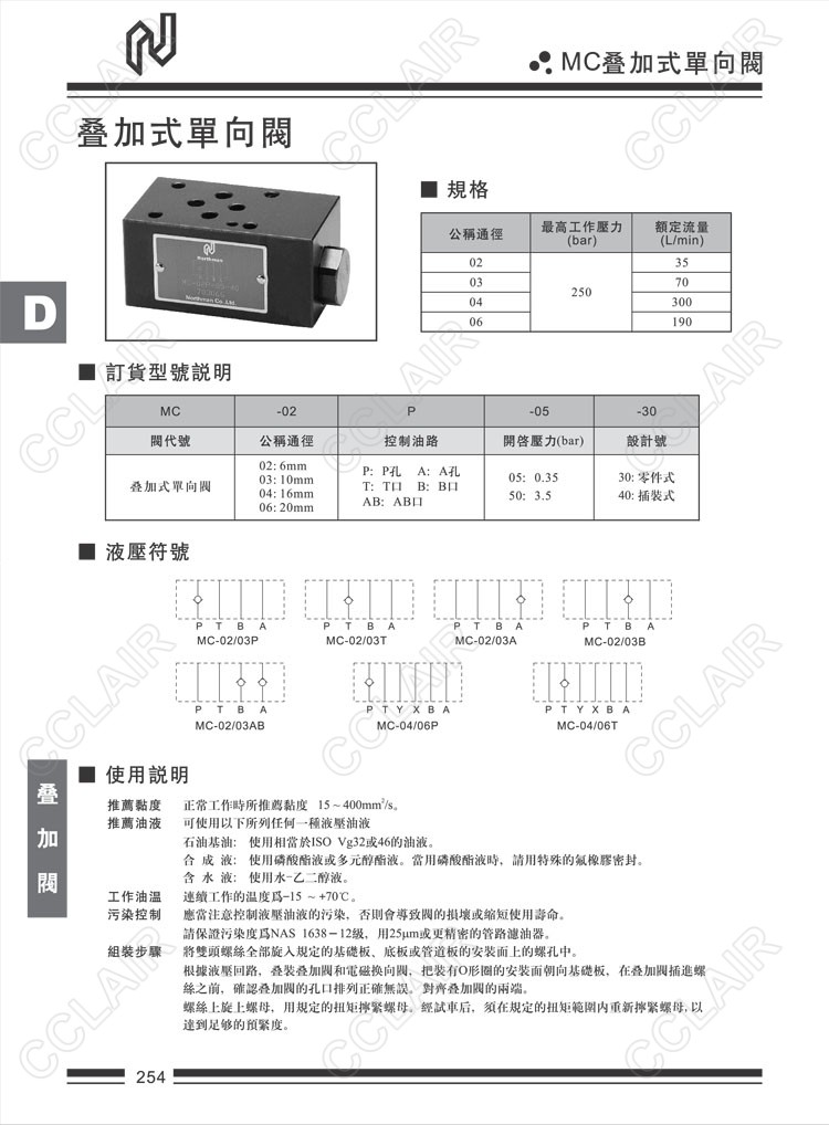 Northman台湾北部精机,叠加式单向阀MC-02-P-05-30,MC-02-P-05-40,MC-02-T-50-30,MC-02-T-50-40,MC-03-T-05-30,MC-03-T-05-40,MC-03-T-50-30,MC-03-T-50-40,MC-06-P-50-30,MC-06-P-50-40,MC-06-AB-50-30,MC-06-AB-50-40