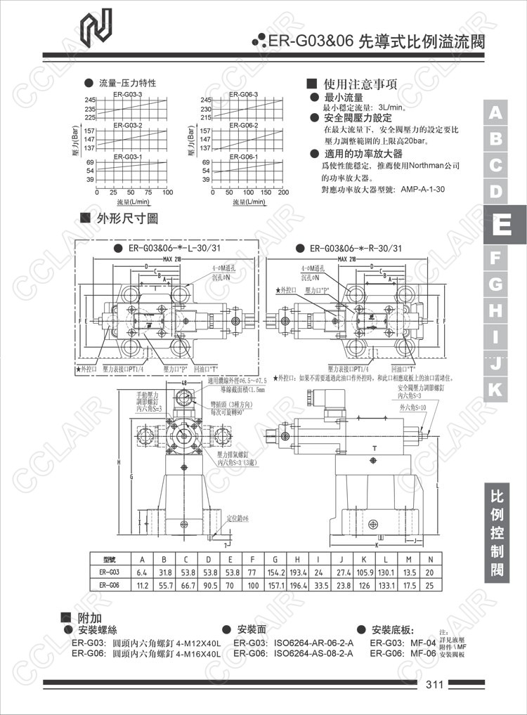Northman台湾北部精机,先导式比例溢流阀ER-G03-1-L-30,ER-G03-1-L-31,ER-G03-2-R-30,ER-G03-2-R-31,ER-G03-3-L-30,ER-G03-3-L-31,ER-G06-2-R-30,ER-G06-2-R-31,ER-G06-3-L-30,ER-G06-3-L-31,ER-G06-3-R-30,ER-G06-3-R-31