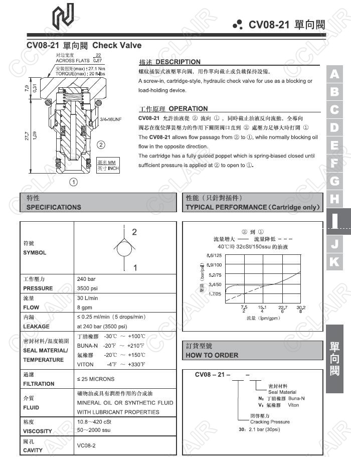 CV08-21-30-N,CV08-21-30-V,Northman台湾北部精机,单向阀