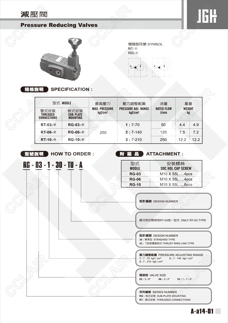 JeouGang台湾久冈,减压阀RG-03-1-30-TU-A,RG-03-1-32-TU-A,RG-06-3-30-TU-A,RG-06-3-32-TU-A,RG-10-1-30-TU-A,RG-10-1-32-TU-A,RT-06-3-30-TU-A,RT-06-3-32-TU-A,RT-10-1-30-TU-A,RT-10-1-32-TU-A,RT-10-2-30-TU-A,RT-10-3-30-TU-A,RT-10-3-32-TU-A