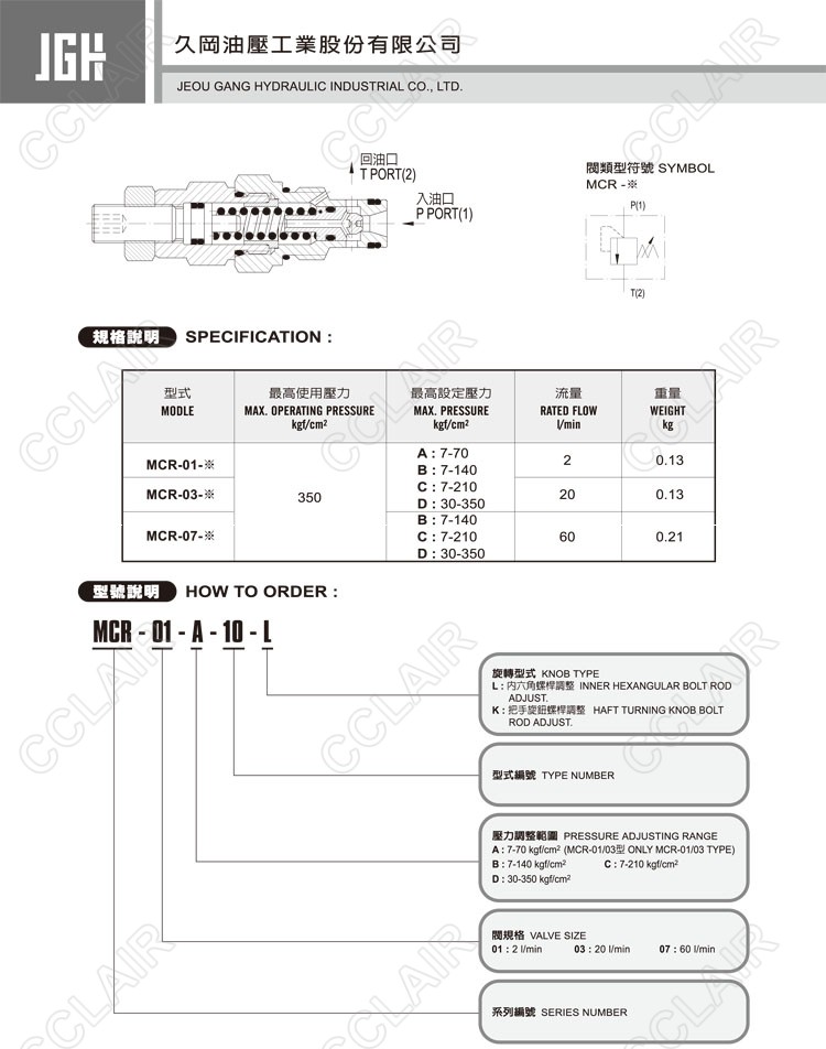 JeouGang台湾久冈,直动式溢流阀MCR-01-A-10-L,MCR-01-A-10-K,MCR-01-D-10-L,MCR-01-D-10-K,MCR-03-A-10-L,MCR-03-A-10-K,MCR-03-D-10-L,MCR-03-D-10-K,MCR-07-A-10-L,MCR-07-A- 10-K,MCR-07-C-10-L,MCR-07-C-10-K,MCR-07-D-10-L,MCR-07-D-10-K