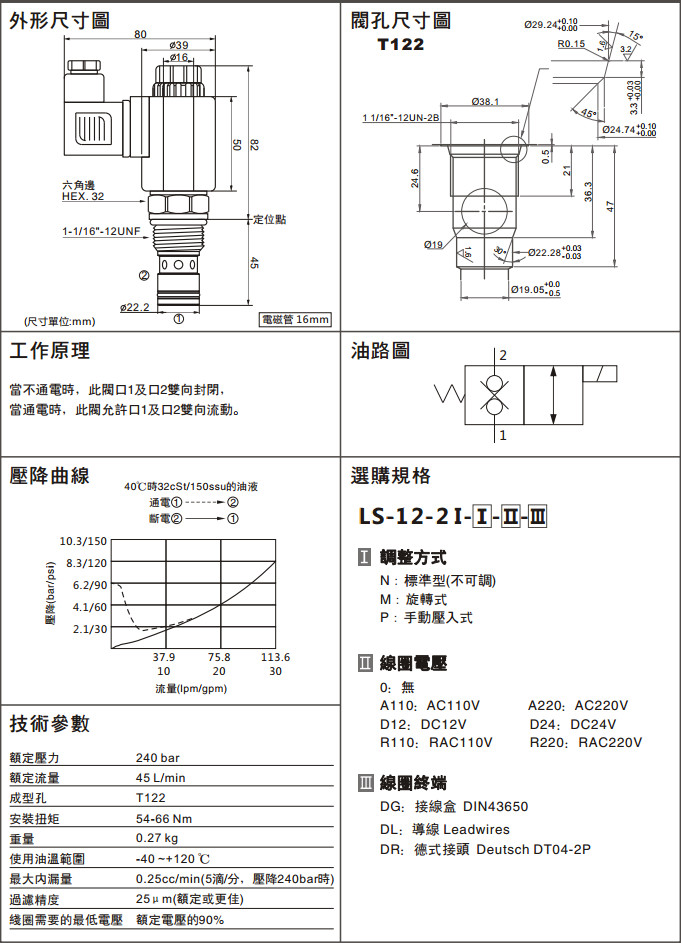 LS-12-2I-P-0-DR,LS-12-2I-P-A110-DR,LS-12-2I-P-D12-DR,LS-12-2I-P-R110-DR,LS-12-2I-P-A220-DR,LS-12-2I-P-D24-DR,LS-12-2I-P-R220-DR,两通常闭型双向截止电磁换向阀