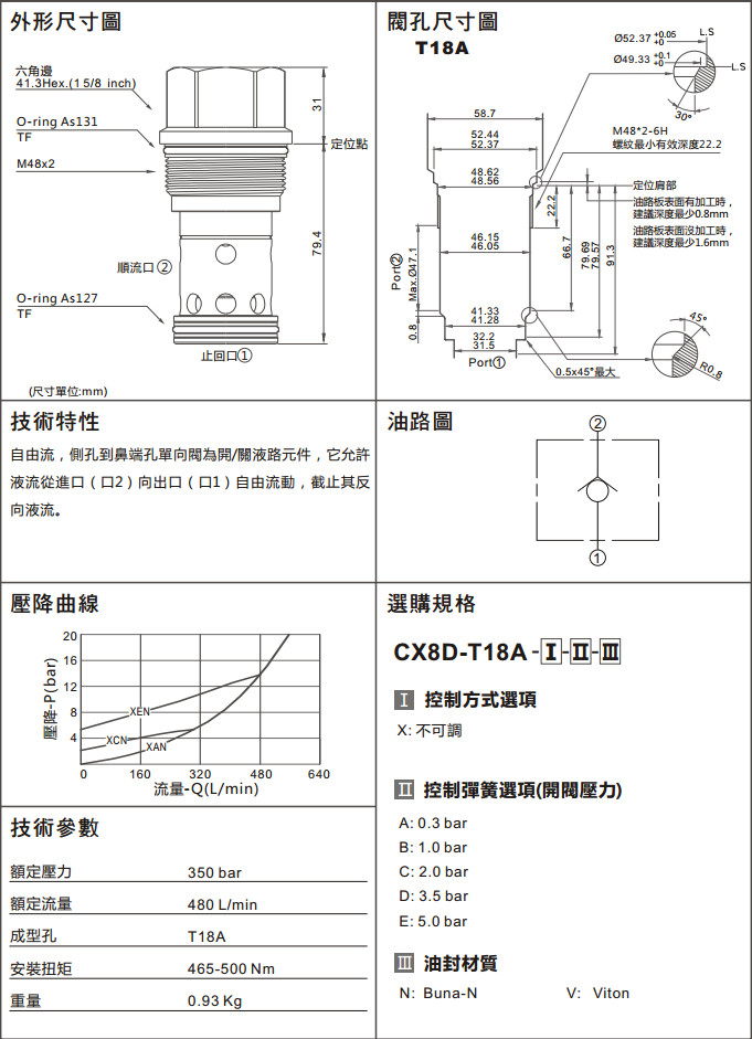 CX8D-T18A-XAN,CX8D-T18A-XBN,CX8D-T18A-XDV,CX8D-T18A-XEV,CX8D-T18A-XCN,CX8D-T18A-XDN,CX8D-T18A-XEN,CX8D-T18A-XAV,CX8D-T18A-XBV,CX8D-T18A-XCV,单向阀(口2通口1自由流)