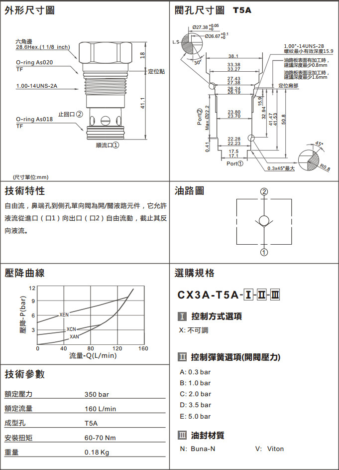 CX3A-T5A-XAN,CX3A-T5A-XCN,CX3A-T5A-XEN,CX3A-T5A-XBV,CX3A-T5A-XEV,CX3A-T5A-XBN,CX3A-T5A-XDN,CX3A-T5A-XAV,CX3A-T5A-XCV,CX3A-T5A-XDV,单向阀(口1通口2自由流)
