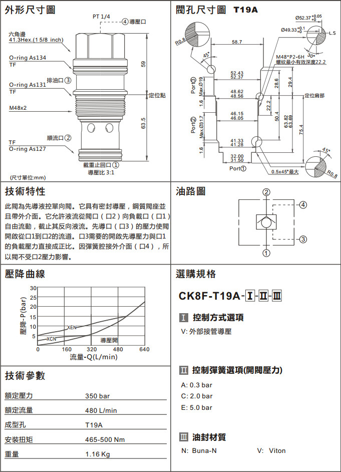 CK8F-T19A-VAN,CK8F-T19A-VCN,CK8F-T19A-VEN,CK8F-T19A-VAV,CK8F-T19A-VCV,CK8F-T19A-VEV,导压开单向阀(外部导压口)