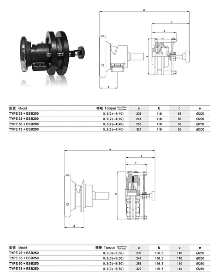 TYPE28+ESB200,TYPE35+ESB200,TYPE50+ESB200,TYPE75+ESB200,TYPE28+ESB250,TYPE35+ESB250,TYPE50+ESB250,TYPE75+ESB250安全夹头配手动制动器