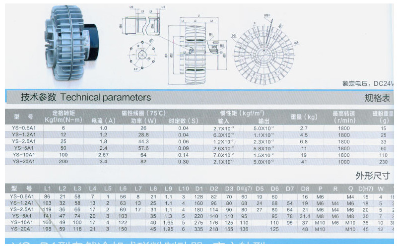 YS-0.6A1,YS-1.2A1,YS-2.5A1,YS-5A1,YS-20A1,YS-20A1,自然冷却式磁粉离合器-空心轴型