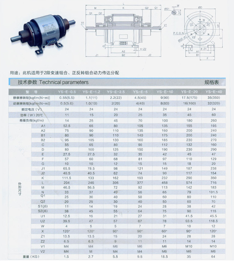 YS-E型电磁双离合组合-导座型用途:此机适用于2段变速组合、正反转组合动力传达分配。
